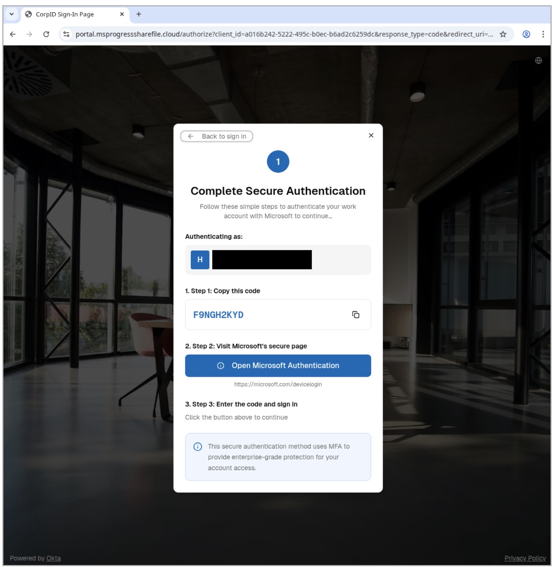 Ancak bunu yapmak kullanıcıyı meşru Microsoft cihaz kodu giriş URL'sine yönlendirir; burada önceden verilen kod girildiğinde, hizmet bir erişim tokenı oluşturur ve bu token üç aktör tarafından kurtarılarak mağdur hesabının kontrolünü ele geçirebilir.