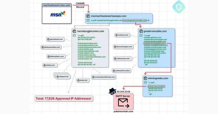 "Bu, alt etki alanının msnmarthastewartsweeps'in tüm davranışını devraldığı anlamına gelir[.] com, SPF politikası da dahil olmak üzere, "dedi araştırmacılar. "Bu durumda, aktör istediği kişiye msn gibi e-posta gönderebilir[.] com ve onaylı postaları bu e-postaları gönderdi!"