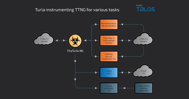 Cisco Talos, 22 Şubat 2023'te yayınlanan bir takip raporunda, TinyTurla-NG arka kapısının, kimlik bilgisi toplama komut dosyaları ve yükseltilmiş süreç yürütme araçlarının yanı sıra Keski tünelleme yazılımının değiştirilmiş bir sürümünü sunmak için kullanıldığını gözlemlediğini söyledi.